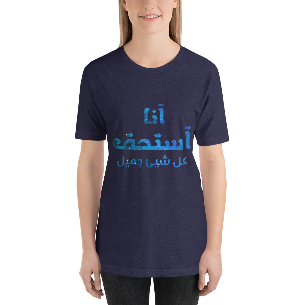 انا استحق كل شيئ جميل) واحد من تصاميمنا المحفزة و الملهمة من جنة الآرض)